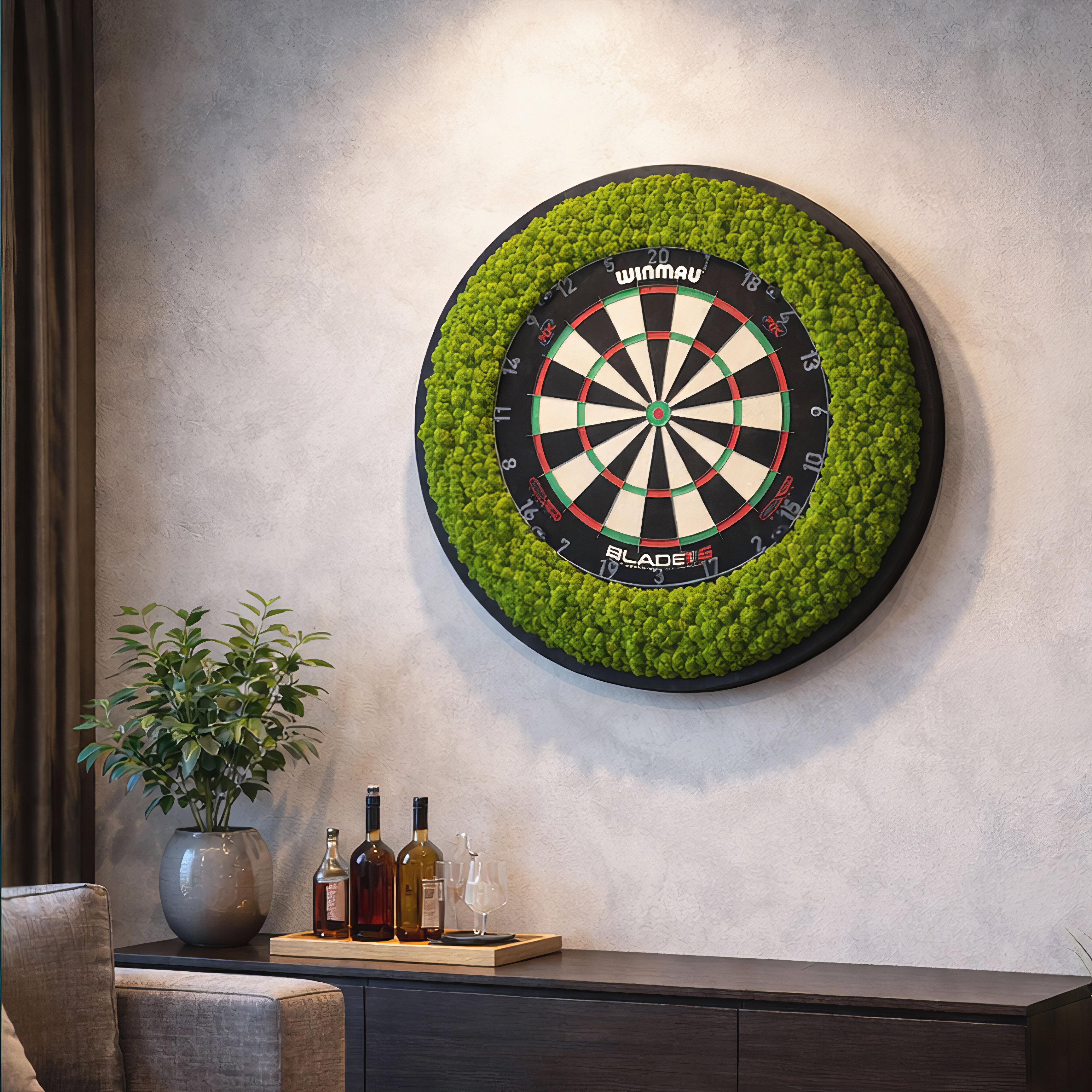 Du liebst Darts und die Atmosphäre großer Turniere? Hol sie dir nach Hause. Der MOOSMOOS Dart Surround ist ein echter Hingucker, den deine Dartfreunde garantiert anfassen wollen – echtes Moos, das begeistert. Und das satte Grün? Beruhigt die Nerven, strahlt Lebensfreude aus und schenkt Energie, auch wenn das Turnier bis Mitternacht geht. Perfekt für dein Zuhause, deinen Hobbyraum, deine Bar – oder die ganz große Bühne bei internationalen Turnieren weltweit.