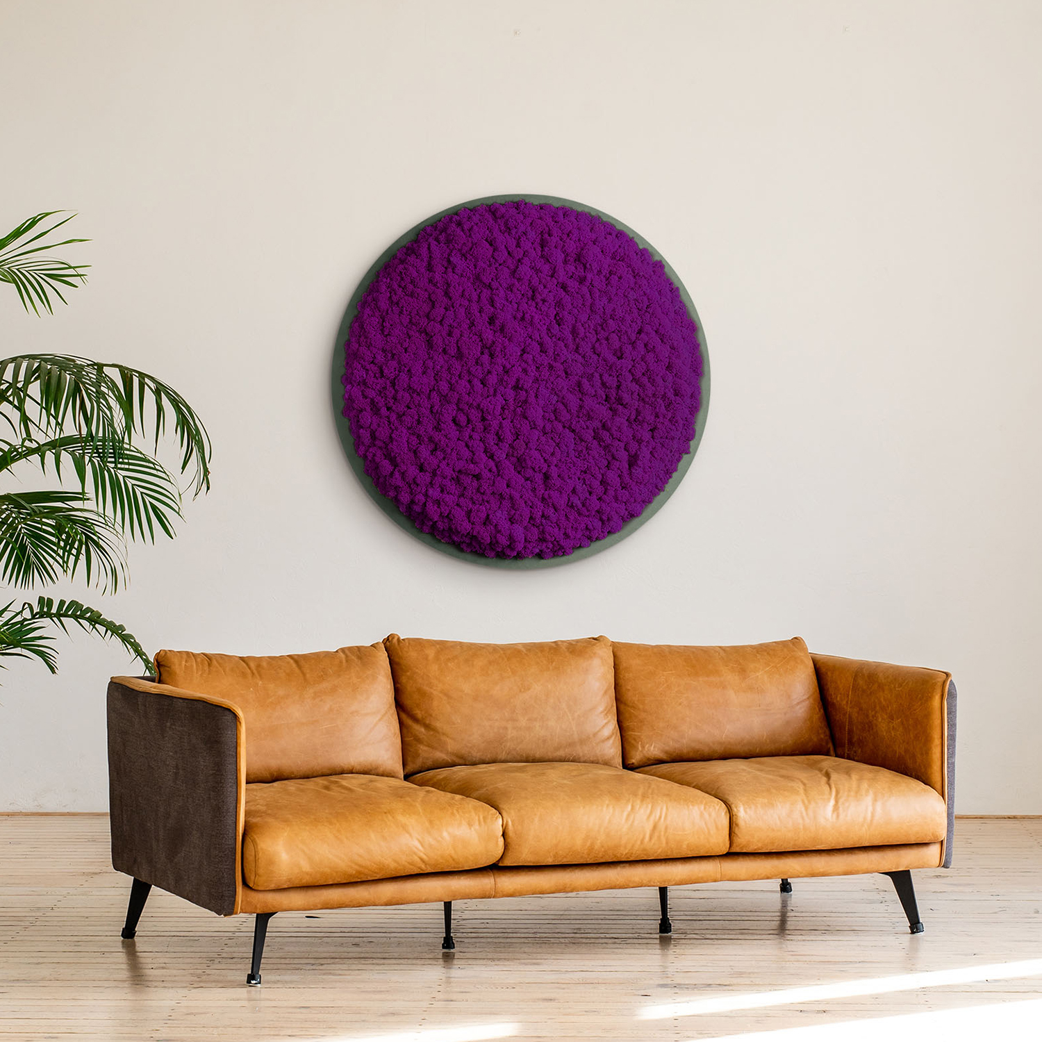 Unser rundes Moosbild mit Islandmoos auf einer anthrazitfarbenen Holzplatte gibt es in vielen verschiedenen Farben und unterschiedlichen Größen. Das Islandmoos ist antistatisch, reguliert die Luftfeuchtigkeit und absorbiert Schall. So ist unser Moosbild mit Islandmoos ideal für Büros, Konferenzräume oder Lobby's, in denen eine gute Akustik wichtig ist.