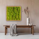 Unser Moosbild aus Kugelmoos erhält durch die Konservierung antistatische Eigenschaften und nimmt kaum Staub auf.